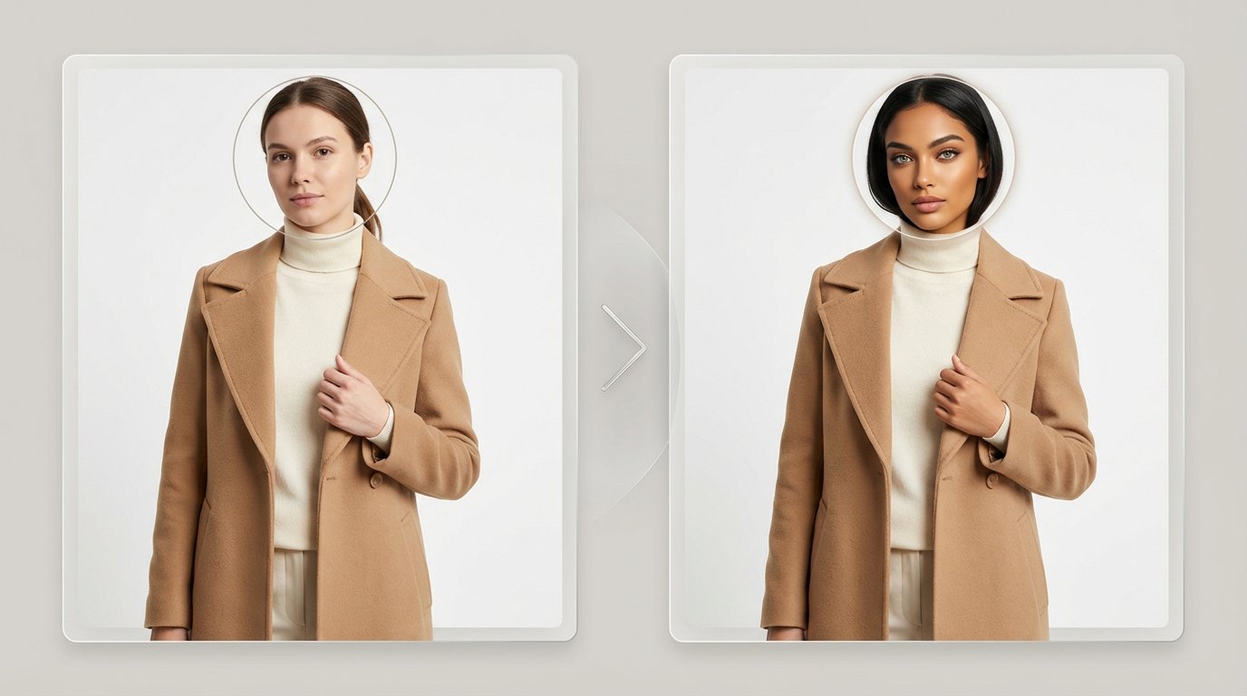 Genera visuales de marketing diversos intercambiando rostros entre diferentes tipos de modelos para campañas inclusivas.
